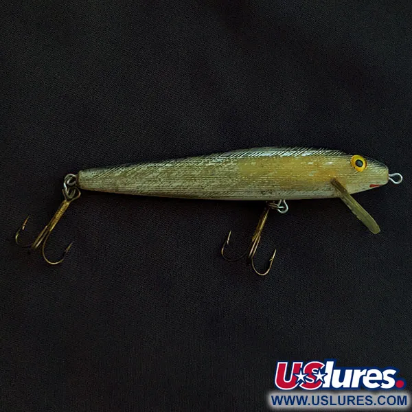 Con un peso de 1/4oz (6,5g), este minnow vintage muestra la clásica construcción de plástico que convirtió a Rebel en un nombre legendario en los EE. UU. El cuerpo de 3 1/2" (9 cm) tiene un acabado en patrón Silver, con una textura detallada de escamas cruzadas en los laterales que se funde con una sección dorsal más oscura. En la cabeza, destacan sus prominentes ojos amarillos con pupilas negras, un sello distintivo de estas primeras series de producción. El babero de plástico transparente está marcado explícitamente con el nombre de la marca y está diseñado para llevar el señuelo a profundidades de entre 3 y 6 pies (0,9-1,8 m). Este ejemplar en particular, identificado por el código de producto 20932, está equipado con dos robustos anzuelos triples sujetos mediante anillas abiertas de metal. Es muy adecuado tanto para técnicas de lanzado como de curricán, especialmente cuando se emplea una recogida lineal o una cadencia de stop-and-go. Dada su historia, el señuelo está en un estado de 4/5, mostrando ligeros signos del paso del tiempo que resaltan su carácter vintage.
