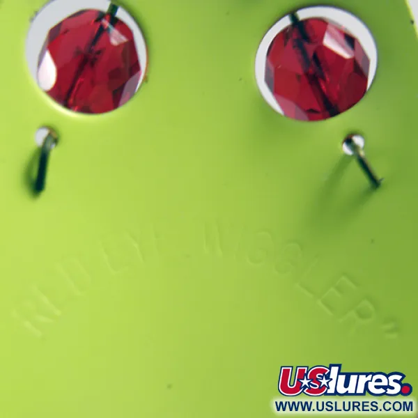 Una vibrante paleta de colores amarillo y naranja define el frente de esta cucharilla de 25g (1oz), proporcionando una alta visibilidad en diversas condiciones del agua. Este Eppinger Red Eye Wiggler, designado con el código de producto 1990, mantiene el legado del diseño Hofschneider con sus inconfundibles cuentas de vidrio rojo facetadas. Estos "ojos" están sujetos de forma segura mediante alambre a través del cuerpo metálico de 7,5cm (3"), un detalle de construcción que ha convertido a este modelo en un elemento básico para los pescadores de lucio durante décadas. El reverso presenta un acabado de níquel pulido, que ofrece un marcado contraste con la cara pintada. En un estado 5/5, el señuelo muestra una superficie limpia y brillante y herrajes originales robustos. Los pescadores suelen utilizar este peso para lances a larga distancia o curricán lento cuando se necesita un perfil más grande para provocar picadas. El anzuelo triple de alta resistencia está unido mediante un sólido anilla abierta, manteniendo la integridad estructural necesaria para los grandes depredadores de agua dulce.