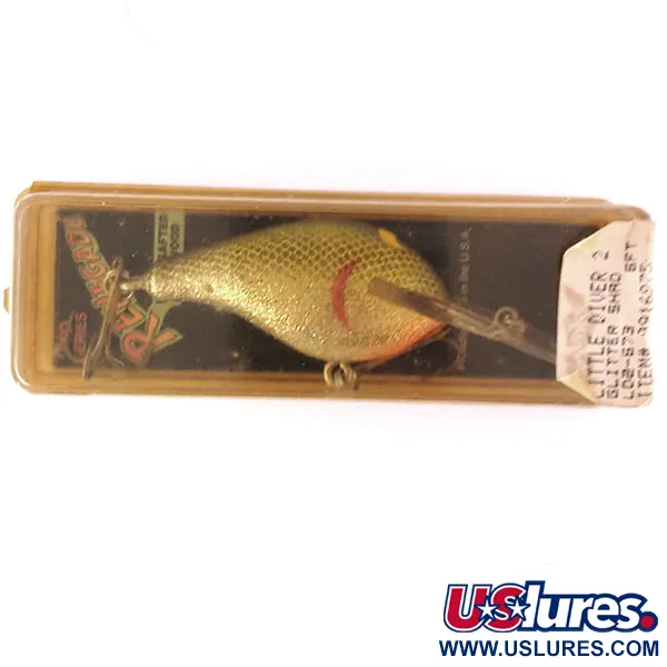 Un acabado brillante Bass Glitter cubre el cuerpo de este Renegade Little Diver, mostrando el meticuloso trabajo del diseñador Lee Sisson. Tallado en madera maciza de jelutong, este crankbait de 2/5oz (11g) está construido para las demandas específicas de la pesca de bass, perca o aspio. El ejemplar, identificado con el código de producto 10501, mide 2 1/4" (6cm) y lleva un recubrimiento reactivo a los rayos UV para mayor visibilidad en diversas condiciones de agua. Su construcción cuenta con un babero transparente diseñado para alcanzar profundidades de 8ft (2,4 m). Este señuelo en particular se conserva en su embalaje de plástico transparente original, en estado sin usar. El hardware consiste en robustos anzuelos triples y anillas abiertas que permanecen brillantes, reflejando la nitidez de las escamas con motas doradas. Un vientre naranja vibrante proporciona un fuerte contraste con los flancos plateados y dorados, rematado con una clásica marca de ataque roja cerca del área de las agallas. Cada Renegade de esta serie fue fabricado a mano en los EE. UU., reflejando el legado de Lee Sisson en el diseño de señuelos de madera.