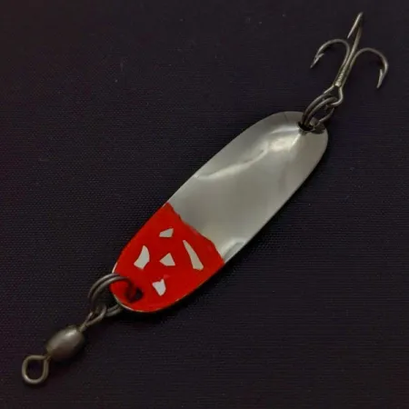 Con una longitud de 4,5 cm (1 3/4"), esta cucharilla ondulante utiliza un perfil alargado clásico, ideal para pescar truchas o percas con equipo ligero. El niquelado estampado en la mitad superior proporciona un destello constante, que contrasta con la sección inferior roja con detalles blancos. Con un peso de 4 g (1/8 oz), la Roy Self #2 está equilibrada para lanzar en huecos cerrados o trabajar a lo largo de los bordes de la vegetación. Una superficie sutilmente contorneada en el cuerpo metálico ayuda a descomponer el reflejo de la luz, un rasgo específico de los diseños de Roy Self. Catalogado con el código de producto 24587, este ejemplar está en condición 5/5 con un acabado limpio y transiciones de pintura bien definidas. Un quitavueltas de barril preinstalado en la cabeza evita la torsión de la línea durante la recogida.