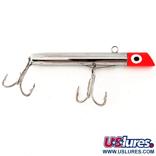 El niquelado proporciona un brillo intenso en el cuerpo de 7 cm de este clásico señuelo estadounidense para agua salada. Fabricado con un peso de 19 g, el Sea Striker Got-Cha Gotcha Plug UV (código de producto 12562) está diseñado para lograr grandes distancias de lanzado cuando se buscan especies rápidas desde muelles y espigones. La cabeza de este ejemplar está acabada en un rosa de alta visibilidad que emite un fuerte resplandor bajo luz UV, una característica diseñada específicamente para provocar picadas en aguas profundas o días nublados. El diseño de Sea Striker es famoso por su durabilidad, con un cuerpo sólido y dos juegos de anzuelos triples afilados. Este señuelo está en condición 5/5, mostrando una superficie brillante y reflectante y una pintura bien conservada en la cabeza plomada. El punto de sujeción superior permite variar la profundidad de presentación según la técnica de recogida.