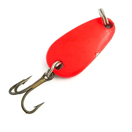 Un vibrante revestimiento fluorescente cubre el cuerpo de 2,5 cm (1") de este señuelo Sølvkroken, destacando en condiciones de poca luz. Con un peso exacto de 4 g (1/8 oz), esta cucharilla presenta un esquema de color "Red UV / Silver" que reacciona intensamente a la luz ultravioleta, transformando el rojo visible en un brillo luminoso. Este modelo, con código de producto 6264, mantiene una calificación de estado 5/5, mostrando una superficie limpia e impecable. El anzuelo triple con acabado en bronce está sujeto firmemente mediante un anilla de llavero de alta resistencia, cumpliendo con los estándares de calidad de la fabricación noruega. Debido a que las propiedades reactivas a los UV están integradas en el pigmento, el señuelo mantiene su presencia visual incluso en aguas tomadas.