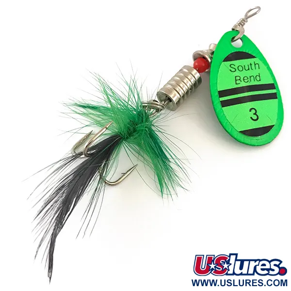 Archivo del museo: South Bend 3 UV Cucharilla, Verde UV, 7g, Triple con Plumas, #4186
