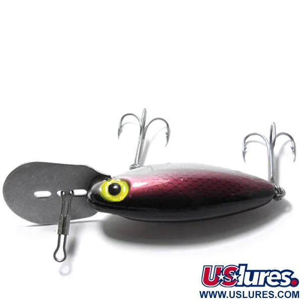 Este modelo de 9 cm (3 1/2") alcanza profundidades de entre 1,5 y 4 m (5 - 13 ft) gracias a su prominente babero metálico. Registrado con el código 0043, el Storm Hot'N'Tot Thin Fin luce una combinación de colores clásica Dark Red / Steel / Black, con un lomo rojo metálico profundo que se funde con costados plateados con patrón de escamas de panal. Su peso de 12 g (2/5 oz) permite lances efectivos, curricán o deriva para pescar lucioperca, perca y lucio. Los ojos amarillos de alta visibilidad con pupilas negras están situados hacia delante, ofreciendo un punto de ataque claro. Este señuelo se mantiene en un estado 5/5, con el acabado y los herrajes originales en excelentes condiciones. Dos anzuelos triples montados con anillas abiertas estándar completan su montaje.