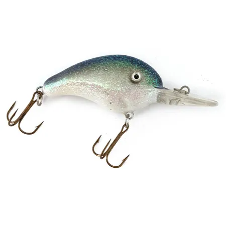 Densas escamas de purpurina en tonos verde azulado y esmeralda cubren la mitad superior de este Strike King 4XD, con una transición fluida hacia un vientre perlado brillante. Con un peso de 1/3 oz (10 g) y una longitud compacta de 2" (5 cm), este ejemplar presenta el distintivo babero transparente de gran tamaño diseñado para alcanzar profundidades de entre 2,4 y 3,6 m. El modelo 13828 es un clásico señuelo de profundidad de fabricación estadounidense, que cuenta con un sistema de sonajero interno para ayudar a localizar especies objetivo como el lucio y la lucioperca. Los componentes se mantienen en excelente estado, con los anzuelos triples originales de acabado bronce sin signos de desgaste. Calificado con un 5/5, el acabado es vibrante y los pequeños ojos plateados con pupilas negras están integrados en la superficie brillante. Este señuelo flotante está diseñado tanto para el lance como para el curricán, conservando su brillo original de fábrica en todo el cuerpo.