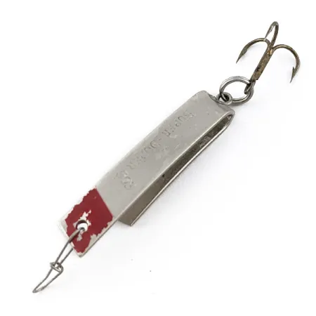 Con un peso de 1/8 oz (4,3 g), el distintivo perfil en forma de 'U' de este Luhr Jensen Super-Duper 503 es la seña de identidad de su diseño exclusivo para captar el agua. El cuerpo de níquel de 1 1/2" (3,5 cm) presenta un identificador de modelo estampado con claridad y está acentuado con un toque clásico de pintura roja cerca del ojal para el sedal. Registrado bajo el código de producto 22870, este señuelo fabricado en EE. UU. conserva su anzuelo triple original y el enganche frontal de alambre. El ejemplar se encuentra en una condición de 4/5, mostrando un ligero desgaste superficial en el detalle de pintura roja, aunque el niquelado permanece brillante y reflectante. Su forma poco convencional está diseñada específicamente para el lance o el curricán con líneas ligeras, lo que lo convierte en una herramienta versátil para truchas y panfish. La integridad estructural del armazón de metal curvado es excelente, reflejando el control de calidad que se espera del material de pesca vintage de Luhr Jensen.