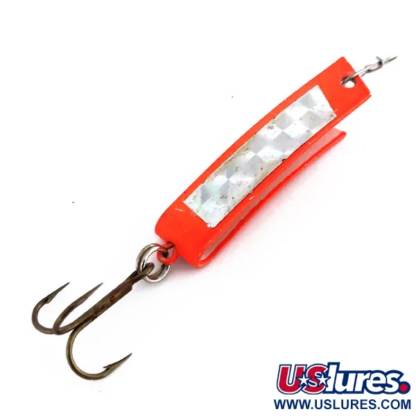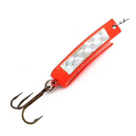 Una capa de pintura naranja fluorescente cubre el cuerpo en forma de U de este ejemplar de 4,5 cm, proporcionando una alta visibilidad en diversas condiciones de agua. Con un peso de 7 g, el Super-Duper 506 UV (código de producto: 9851) cuenta con una exclusiva incrustación de cinta prismática que ofrece destellos desde múltiples ángulos. Este modelo específico de South Bend está diseñado con propiedades reactivas a los rayos UV, lo que permite que el señuelo brille intensamente cuando se expone a la luz ultravioleta. Su diseño se basa en una sola pieza de metal doblado, un sello distintivo de la línea Super-Duper fabricada en EE. UU., pensada para lances y curricán versátiles. Un anzuelo triple está sujeto a la parte trasera mediante una robusta anilla abierta, mientras que el punto de enganche delantero es un orificio troquelado limpio. Con una calificación de 5/5, el estado de este señuelo es excelente, sin desgaste visible en el revestimiento fluorescente ni en el inserto holográfico. La forma metálica en U está diseñada para mantener su integridad estructural bajo la presión de una picada, ofreciendo al mismo tiempo un perfil delgado.