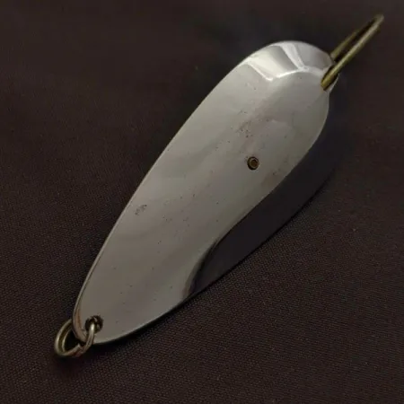 Un niquelado brillante cubre toda la superficie de esta pesada cucharilla ondulante, que cuenta con un protector anti-algas de alambre integrado diseñado para desviar nenúfares y juncos. Con un peso de 3/4 oz (21 g), el denso cuerpo metálico permite lanzados a larga distancia estables hacia huecos específicos en la cobertura. El sello del fabricante en la curva interior identifica esta pieza como una creación de Tony Accetta, material especializado para entornos con muchos obstáculos. Etiquetado con el código 24618, este ejemplar se mantiene en estado 5/5, conservando su brillo original y acabado liso. El anzuelo simple está fijado directamente al cuerpo de la cucharilla, reforzado por la tensión estructural del protector anti-algas. El acabado de níquel proporciona destellos de alto contraste, asegurando la visibilidad en aguas tomadas o días nublados.