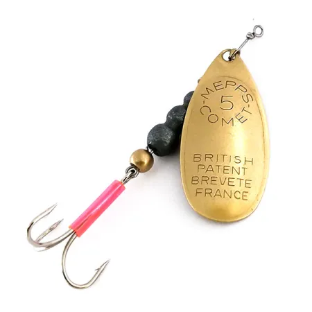 Archivo del museo: Vintage Mepps Comet 5 Cucharilla, Latón, 8cm, Funda rosa, #10199