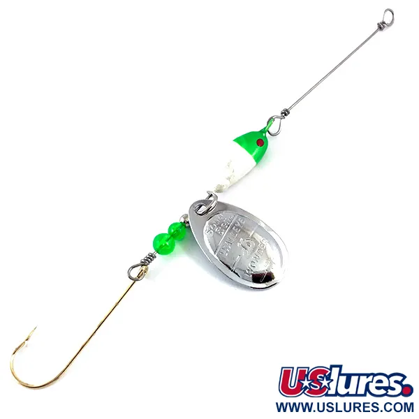 Archivo del museo: South Bend Walleye Wonder Spinnerbait, Níquel/Verde/Blanco, 14g, #4670
