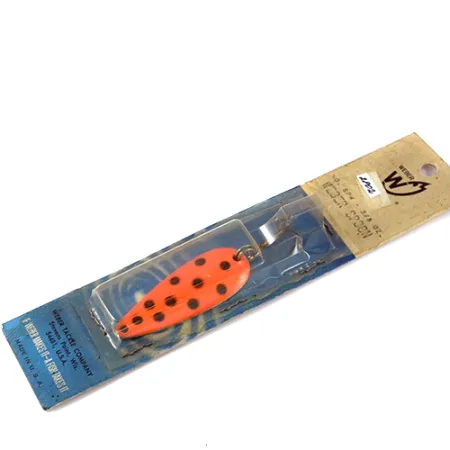 Un vibrante patrón de lunares rojo/negro identifica inmediatamente a esta Weber Spoon como un clásico de mediados de siglo de la Weber Tackle Company con sede en Stevens Point, Wisconsin. Con un peso de 11 g (2/5 oz) y una medida de 6 cm (2 1/4"), esta pieza de historia americana está catalogada bajo el código 2802. El señuelo permanece sin usar, fijado en su embalaje original azul y beige que muestra el eslogan "Weber Makes It—A Fish Takes It". Aunque los herrajes y el acabado están limpios, el embalaje vintage muestra ligeras marcas de almacenamiento acordes con su edad. Su sencilla geometría de lágrima y su anzuelo triple trasero fueron diseñados para ofrecer versatilidad tanto en el lanzado como en el curricán. Este espécimen descatalogado sirve como un vínculo tangible con el legado de uno de los fabricantes de material de pesca más conocidos de EE. UU.