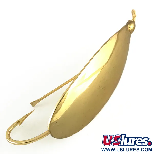 Resplandeciente con un acabado dorado clásico, este ejemplar representa el legendario diseño anti-enganche perfeccionado por Louis Johnson en 1920. Con un peso de 6 g (3/16 oz), la construcción de aleación de cobre y zinc de esta cucharilla ondulante es más gruesa en el centro, lo que ayuda a mantener su orientación durante la recogida. Esta Weedless Johnson Silver Minnow, identificada con el código de producto 6698, mide 4,5 cm (1 3/4") y cuenta con el icónico anzuelo con protector integrado para pescar en vegetación densa. Con una calificación de 5/5, el señuelo exhibe el chapado de alta calidad típico de la producción antigua fabricada en EE. UU. antes de que la fabricación se trasladara al extranjero. La superficie dorada produce destellos hacia abajo y hacia los lados mientras el cuerpo se balancea en un ángulo de 270 grados. Debido a que el movimiento oscilante se mantiene constante incluso al añadir un trailer, muchos coleccionistas y pescadores todavía los combinan con tiras de piel de cerdo (pork rind) para imitar a un pez pasto herido. El anzuelo simple está posicionado para mirar siempre hacia arriba, evitando obstáculos mientras queda libre para una picada desde abajo.