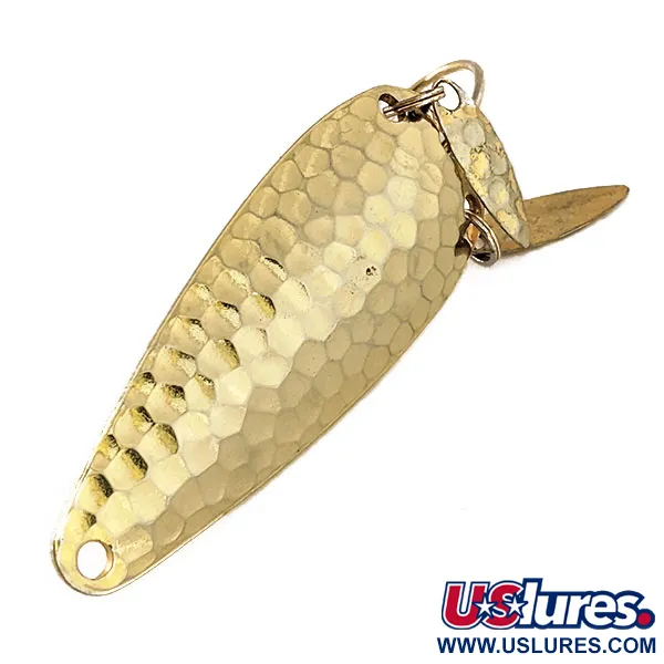 Las superficies de oro martillado captan la luz maravillosamente en este hallazgo vintage de 6 cm (2 1/4"). Con el código de producto 11355, esta cuchara Weedless Marathon de 12 g (2/5 oz) presenta un diseño distintivo destinado a la pesca en coberturas densas. Dos palas sónicas móviles están unidas en la parte trasera, creando destellos y vibraciones mientras ayudan a ocultar el conjunto del anzuelo. Incorpora un protector de maleza clásico para proteger el anzuelo, lo que la hace adecuada para lanzar en lechos de algas y nenúfares. El reverso muestra claramente el origen estampado de la Marathon Bait Company, con sede en Wisconsin, que produjo aparejos estadounidenses desde 1929 hasta 1979. Este espécimen se mantiene en condiciones 5/5, con el acabado dorado y los herrajes extremadamente bien cuidados y limpios. La cara texturizada está diseñada para maximizar la reflexión de la luz desde varios ángulos, reflejando la sólida artesanía de la fabricación de mediados de siglo.