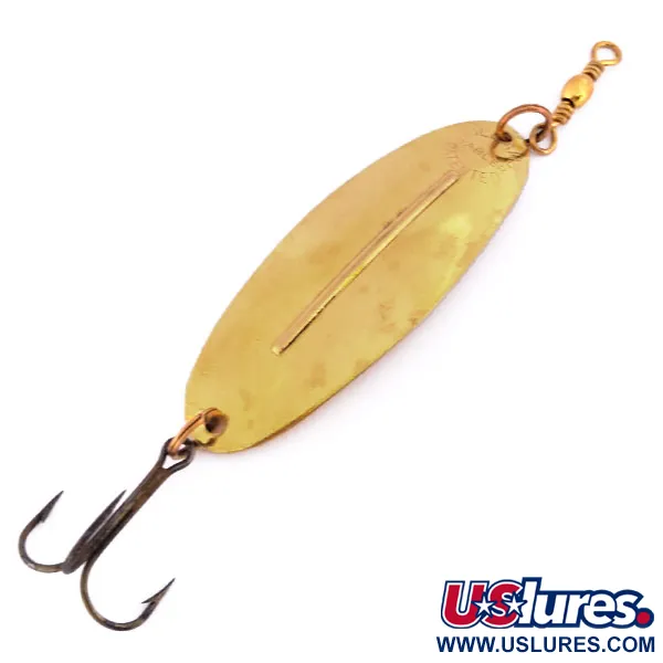 Con un peso de 18g (2/3oz), este espécimen canadiense clásico presenta la característica nervadura estabilizadora que ha convertido a la Williams Wabler en un elemento básico para los pescadores de lucio y lucioperca durante décadas. Con una longitud de 8,2cm (3 1/4"), la cucharilla ondulante tiene un acabado dorado brillante de alta visibilidad. Este modelo específico, identificado con el código 10209, lleva estampada la marca del fabricante cerca del ojal superior. El diseño estructural mantiene una trayectoria estable tanto en recogidas rápidas como lentas, gracias a esa distintiva línea central elevada. Se mantiene montada con su anzuelo triple de bronce de estilo original y un robusto quitavueltas de barril. Con una valoración de 5/5, el chapado está impecable y los componentes están totalmente sanos.