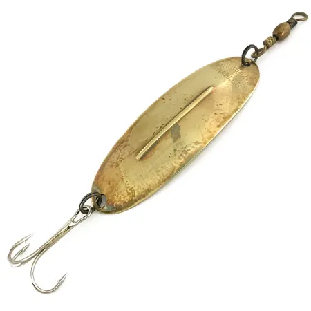 Una prominente nervadura longitudinal define el cuerpo de este clásico canadiense de 8,25 cm (3 1/4"), una característica diseñada específicamente para mantener la estabilidad en una amplia gama de velocidades de recogida. La marca Williams es famosa por utilizar acabados de metales preciosos, y este Wabler en particular, identificado con el código de producto 6917, presenta un cálido color latón que proporciona un brillo natural muy apreciado para el lucio y la lucioperca. Con un peso de 18,9 g (2/3 oz), el señuelo está equipado con un robusto anzuelo triple y un esmerillón de barril integrado para evitar la torsión de la línea. Con una calificación de 4/5, el ejemplar se mantiene en excelente forma, con el nombre de la marca estampado claramente visible en la cara superior. Fabricado en Canadá, su construcción de latón de gran calibre proporciona el peso necesario para lances de larga distancia en estructuras de aguas profundas.