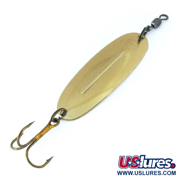Una nervadura longitudinal estampada recorre el centro de esta cucharilla de 5,2 cm (2"), que sirve como la característica de estabilización distintiva del diseño Williams. Con un peso de 7 g (1/4 oz), esta Wabler W40 con acabado dorado es un ejemplo clásico de la artesanía canadiense de Williams (Código de producto 10962). Este modelo específico muestra la icónica cresta desarrollada por primera vez en 1914 en Buffalo, aunque la producción se centralizó finalmente en Canadá en 1978. Mientras que muchas cucharillas Wabler son famosas por su baño de plata, esta variante de color dorado proporciona un destello metálico distinto destinado a atraer al lucio y la lucioperca durante el lance o la cacea. Los componentes siguen siendo robustos, con un anzuelo triple fijado de forma segura en la cola y un esmerillón de giro suave en la cabeza para evitar la torsión de la línea. Un sello nítido del fabricante es visible cerca del orificio superior, lo que refleja la herencia de un diseño que ha sido un elemento básico en las cajas de aparejos desde la década de 1920.